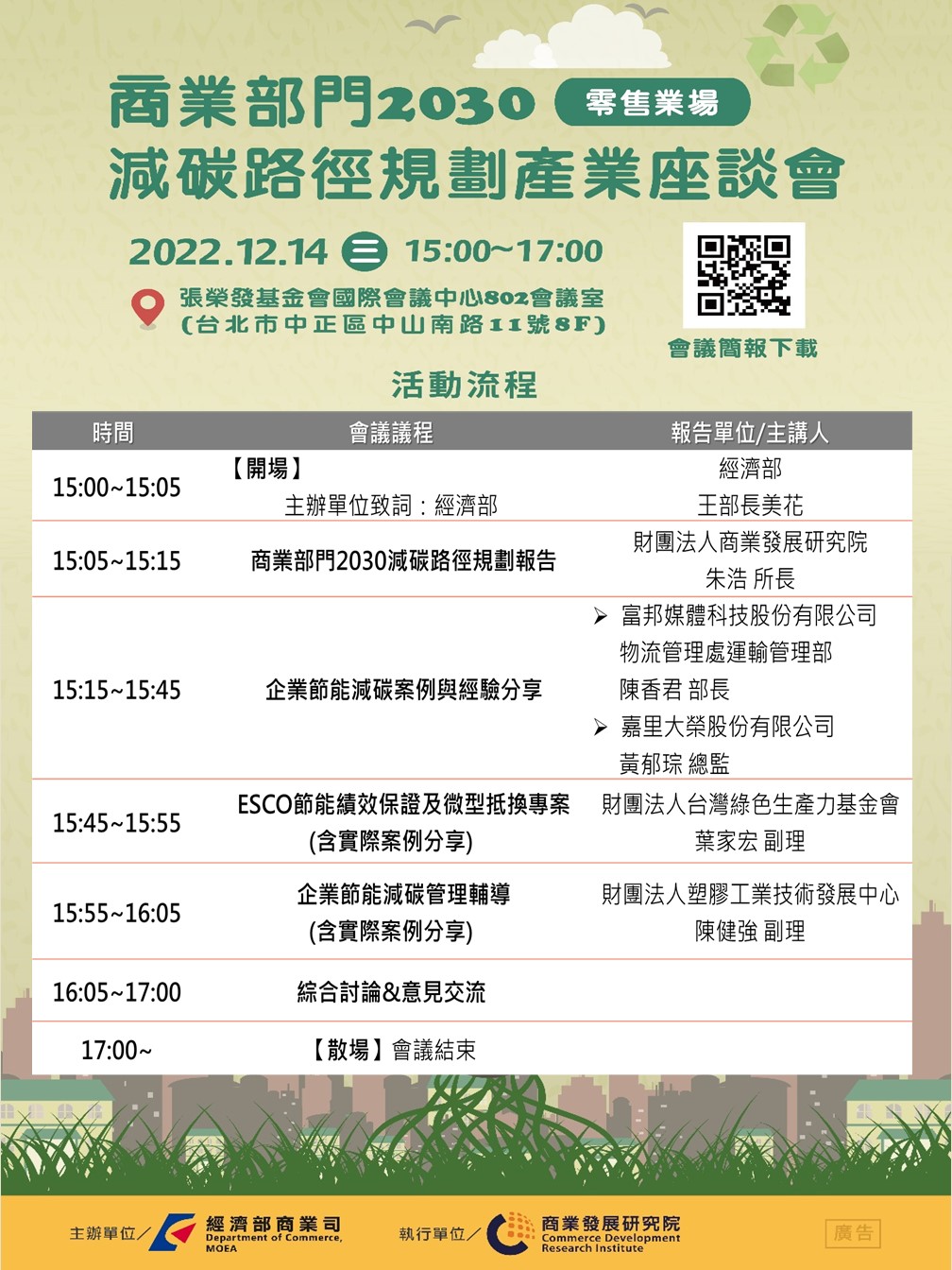 【座談會】「商業部門2030減碳路徑規劃」產業溝通座談會【零售業、物流業場次】(已結束)